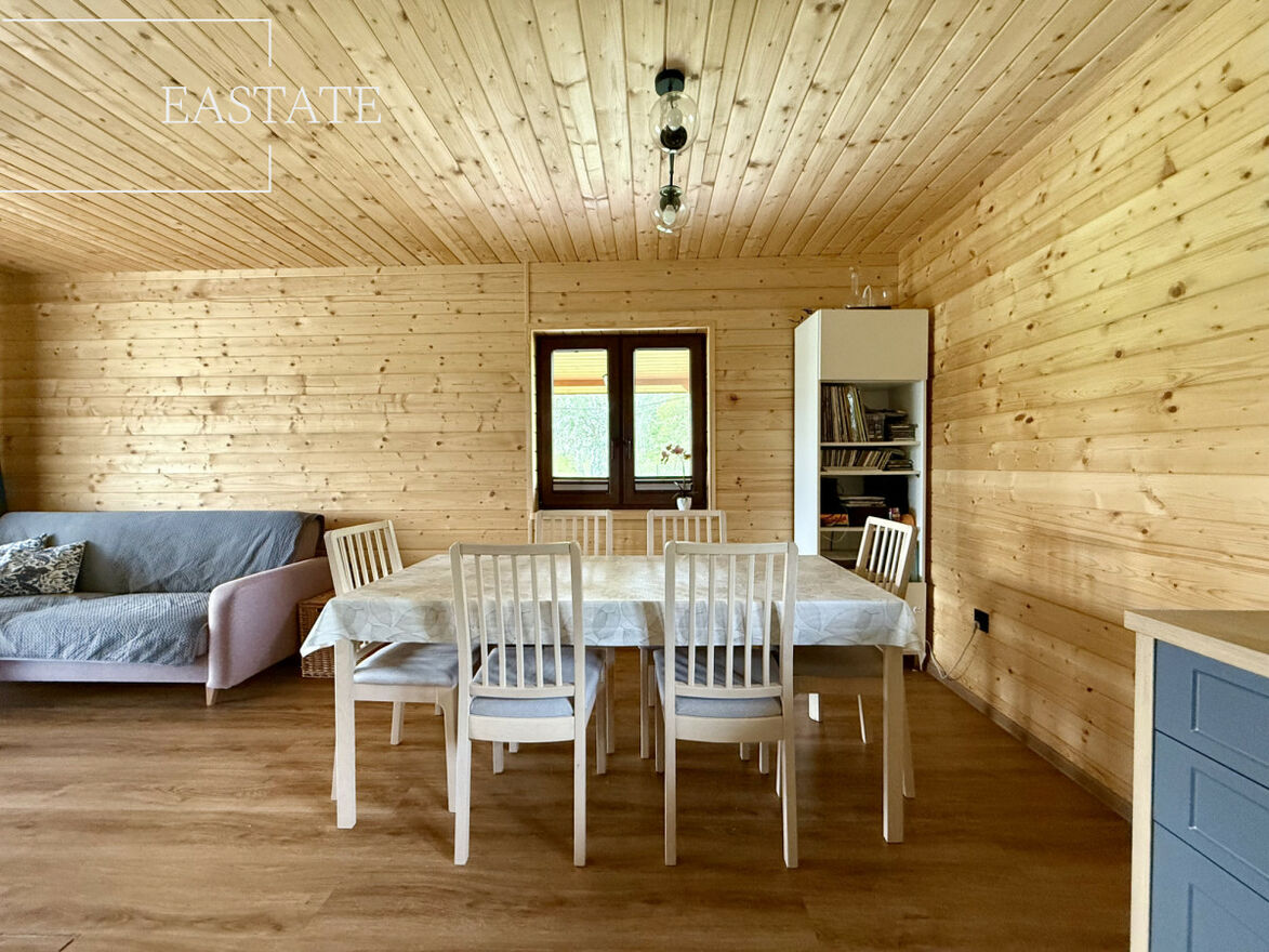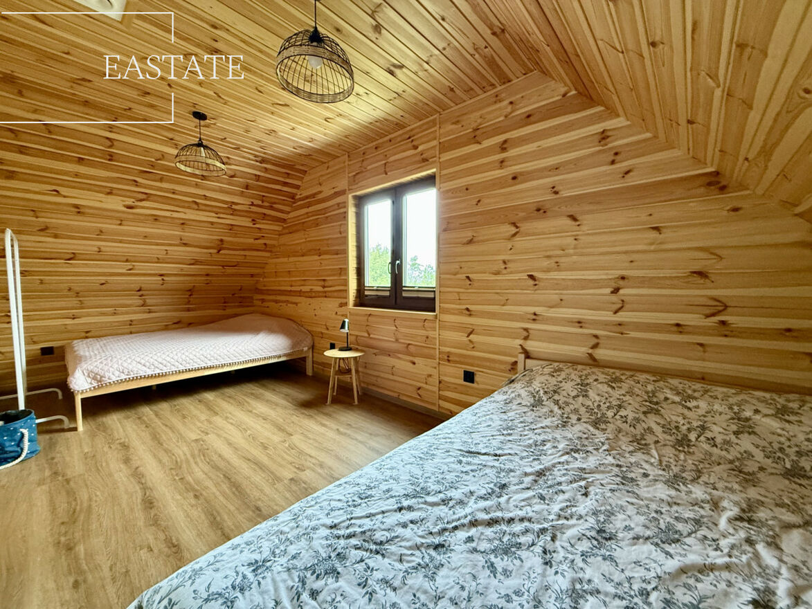 Nowoczesność i funkcjonalność - dom z 2022 roku, zbudowany w technologii szkieletowej na płycie fundamentowej, ocieplony i wykończony półbalem. Przemyślany układ pomieszczeń - 3 sypialnie, 2 łazienki, przestronny salon z kominkiem i w pełni wyposażona kuchnia.